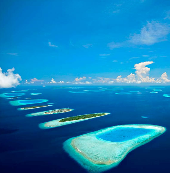 The Maldives comprises of 26 natural atolls consisting of dual island chains. Incidentally the Maldivian language has the distinct pleasure of contributing to the English word “atoll”, which was derived from the Maldivian word “atholhu”.